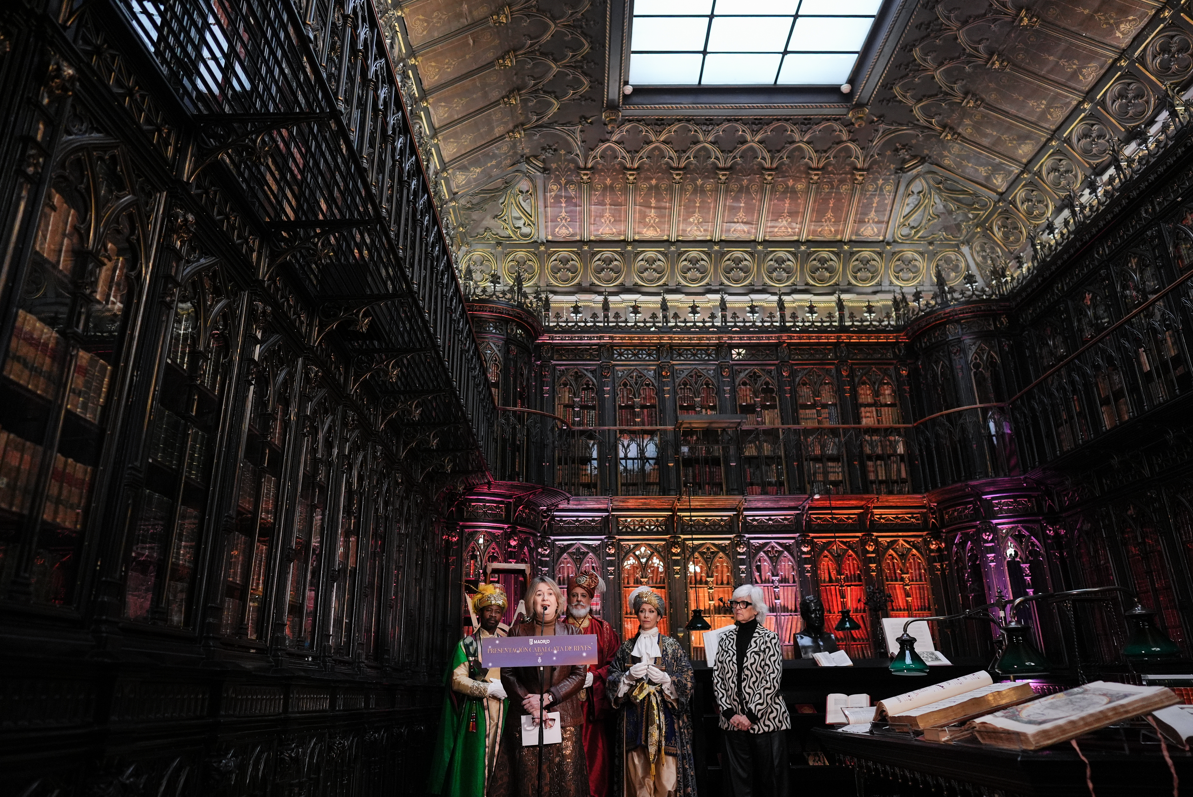 La delegada de Cultura, Turismo y Deporte, Marta Rivera de la Cruz, acompañada de los emisarios reales, ha presentado hoy la cabalgata de Reyes 2026 en la biblioteca del Senado.