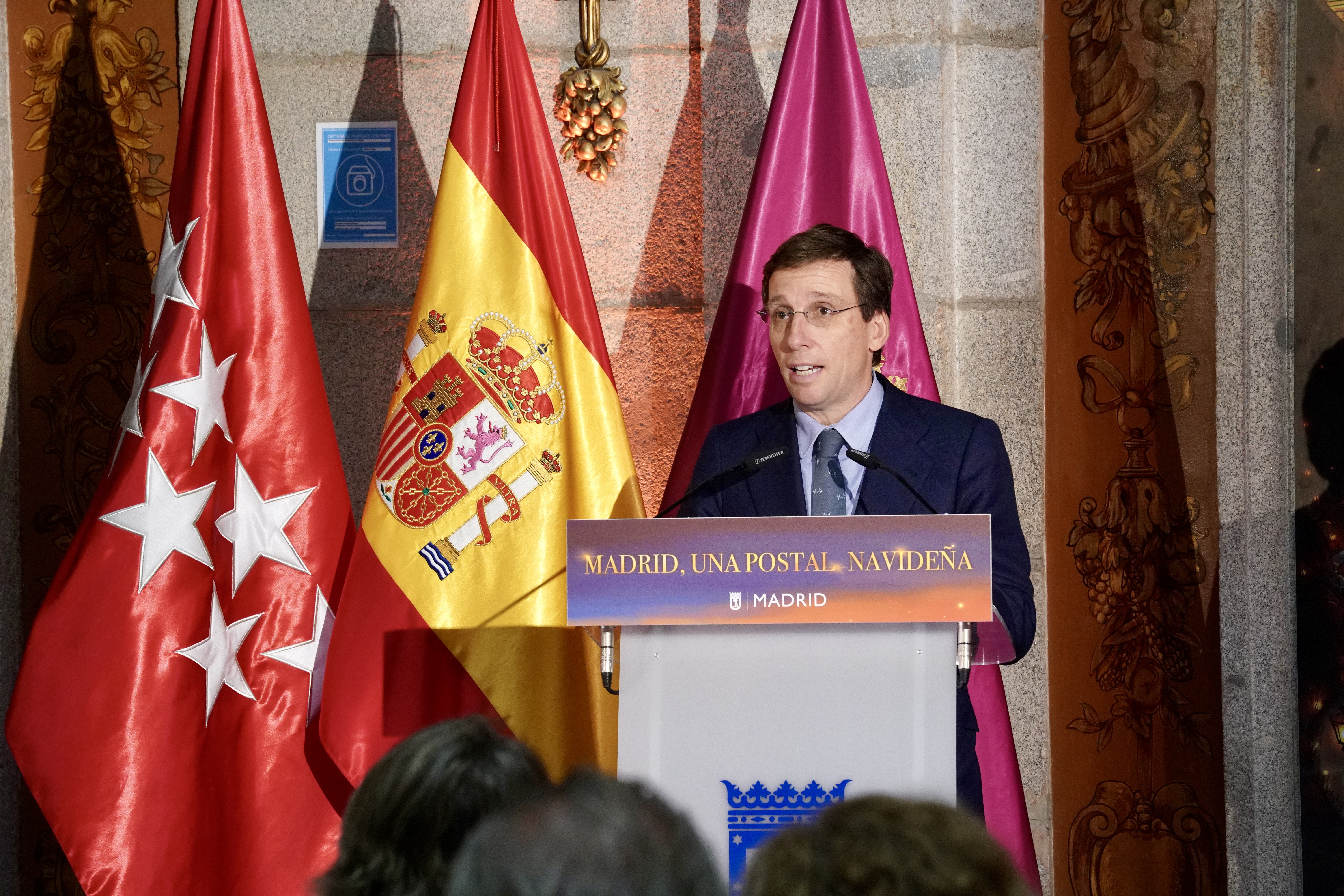 El alcalde de Madrid, José Luis Martínez-Almeida, acompañado de la delegada de Cultura, Turismo y Deporte, Marta Rivera de la Cruz, ha presentado en Casa de la Villa la programación que el Ayuntamiento de Madrid ha diseñado para las fiestas de Navidad y que lleva por lema ‘Madrid, una postal navideña’. En el acto, que ha contado con la actuación del grupo Mocedades y del Coro de Voces Graves de Madrid.